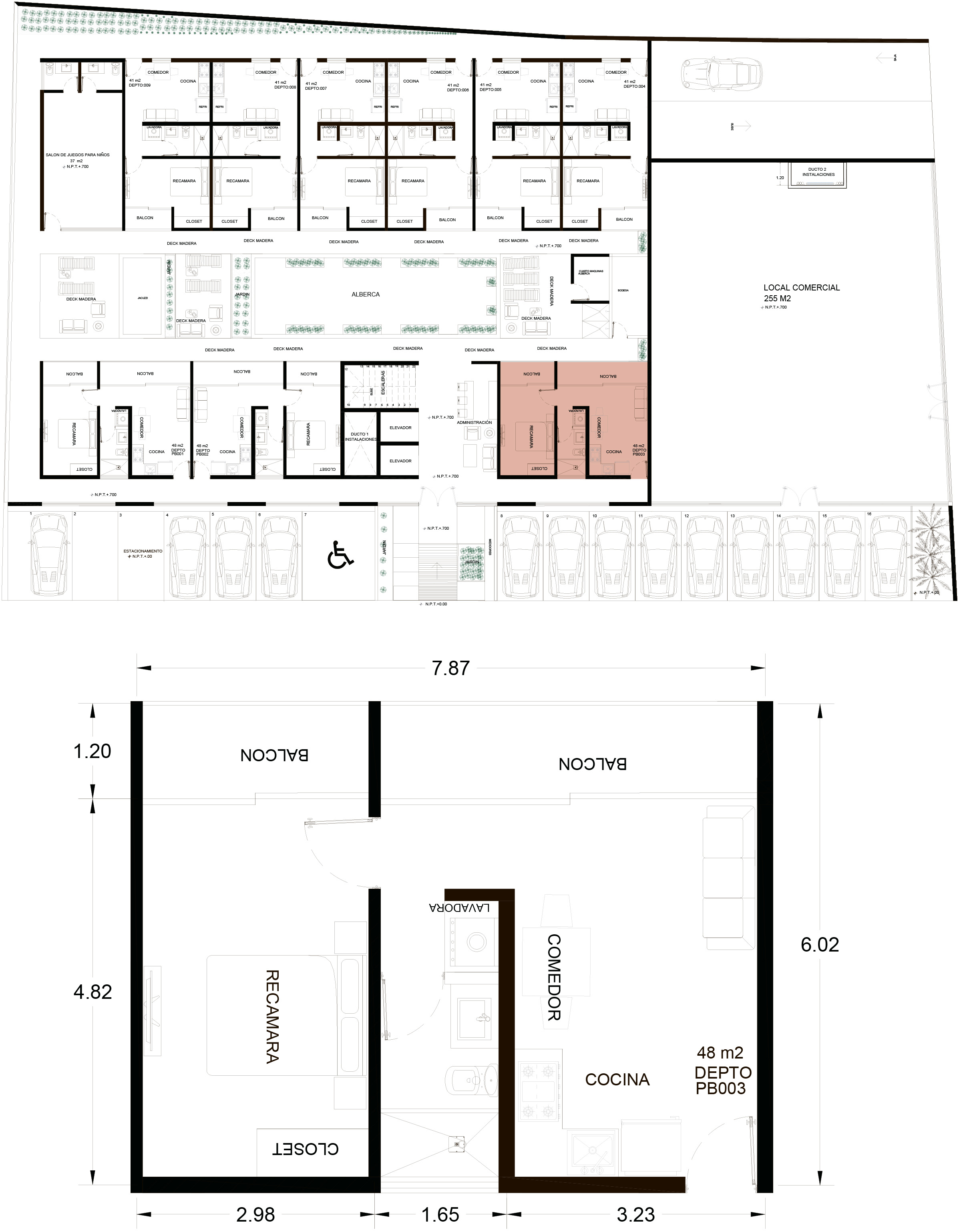 1 DEPTO DE DOS RECAMARAS DE 72 m2
